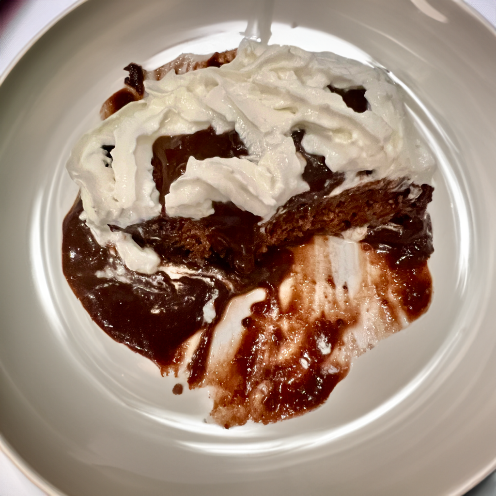 • In a bowl, stir together sugar, cocoa powder, flour, baking powder, salt, milk and vanilla. Spoon mixture over melted butter, but do not stir.